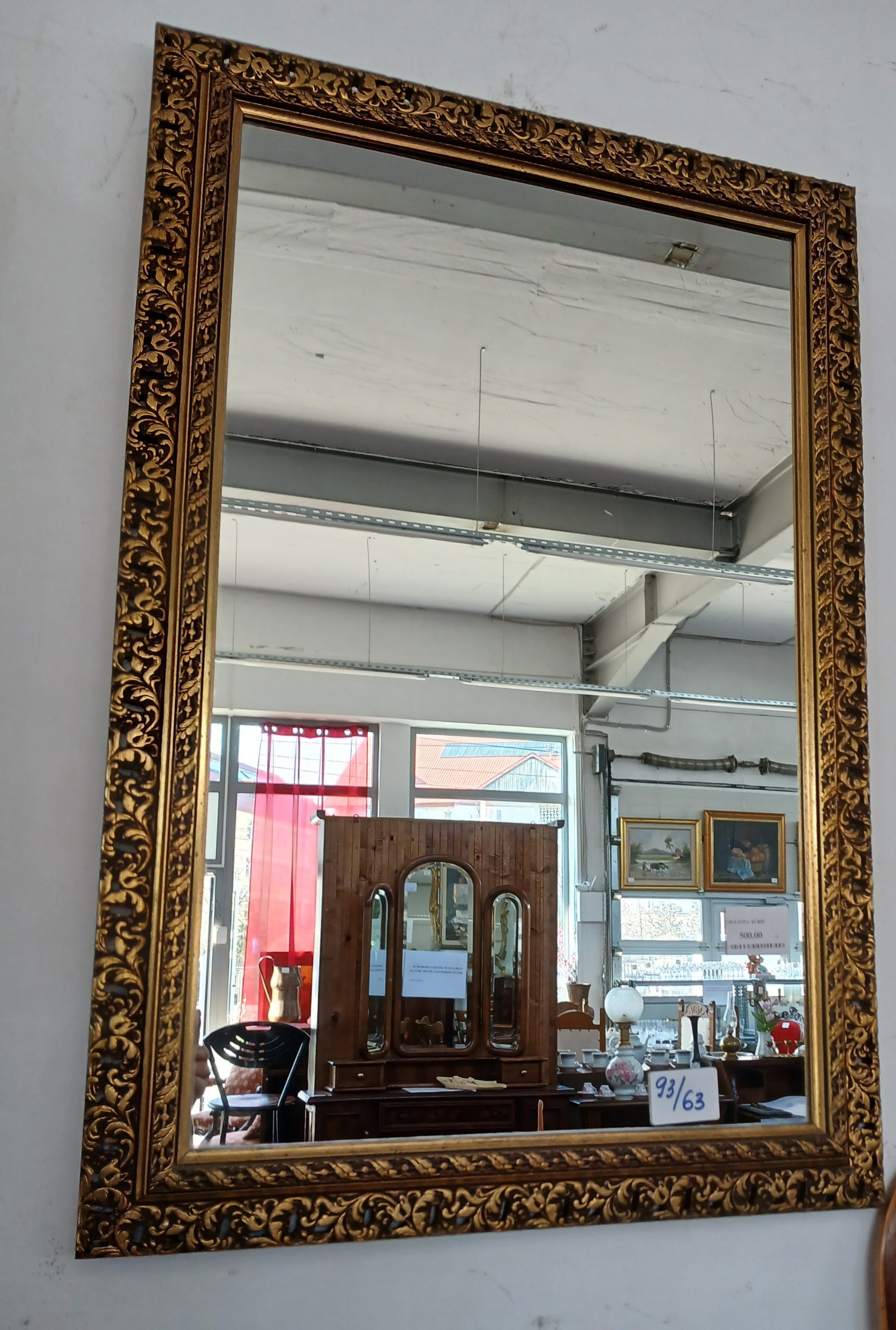 Aceasta este o oglindă vintage de perete ,caracterizată printr-o ramă din lemn aurie ,bogat ornamentată,in stil baroc, cu detalii elaborate precum frunze de acant sau volute Dimensiuni: 93×63 cm.