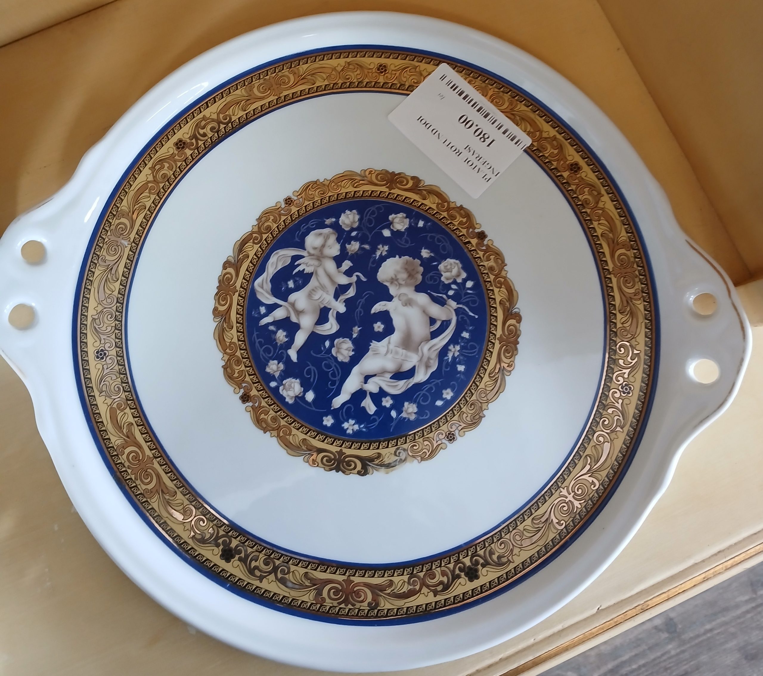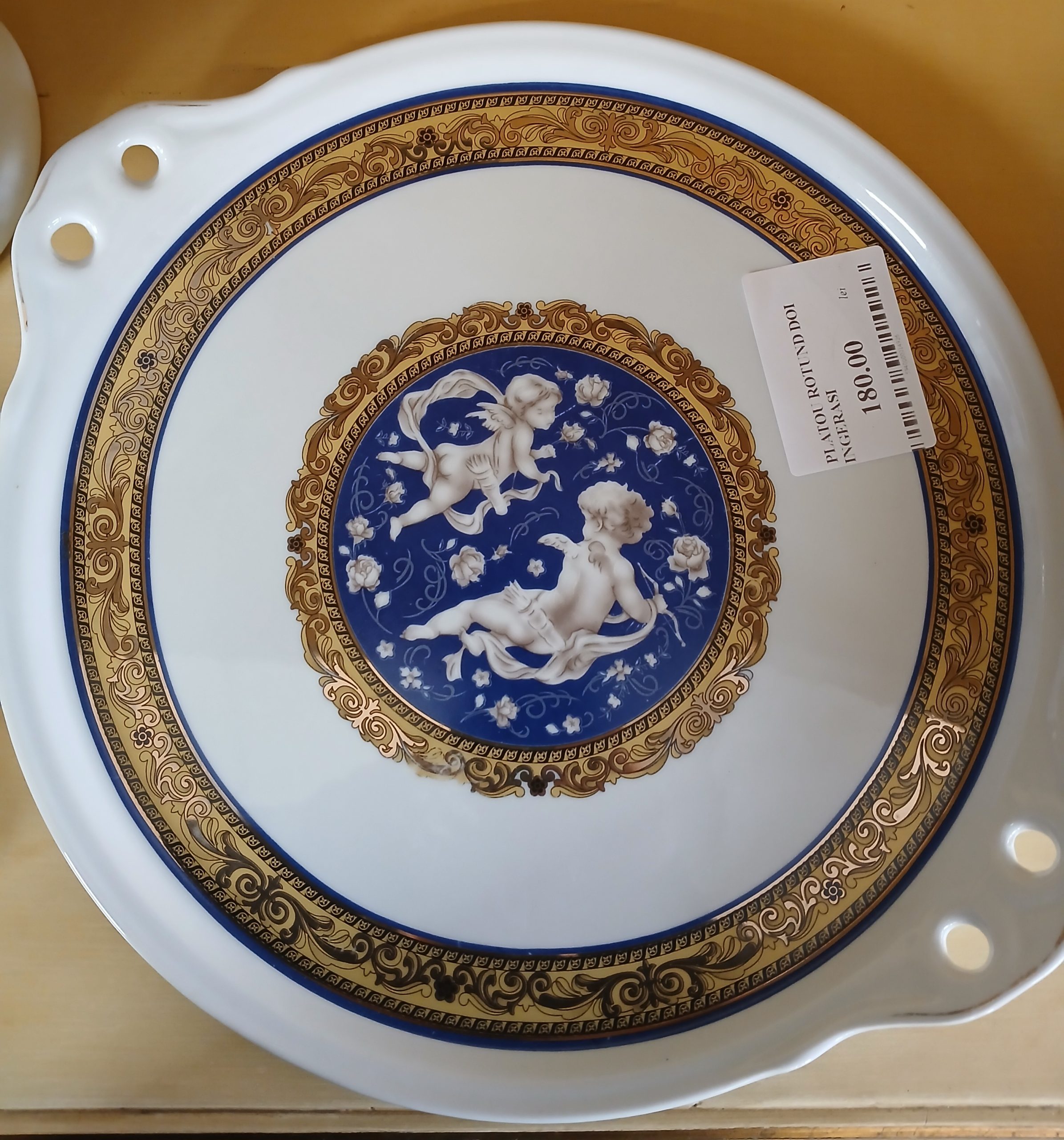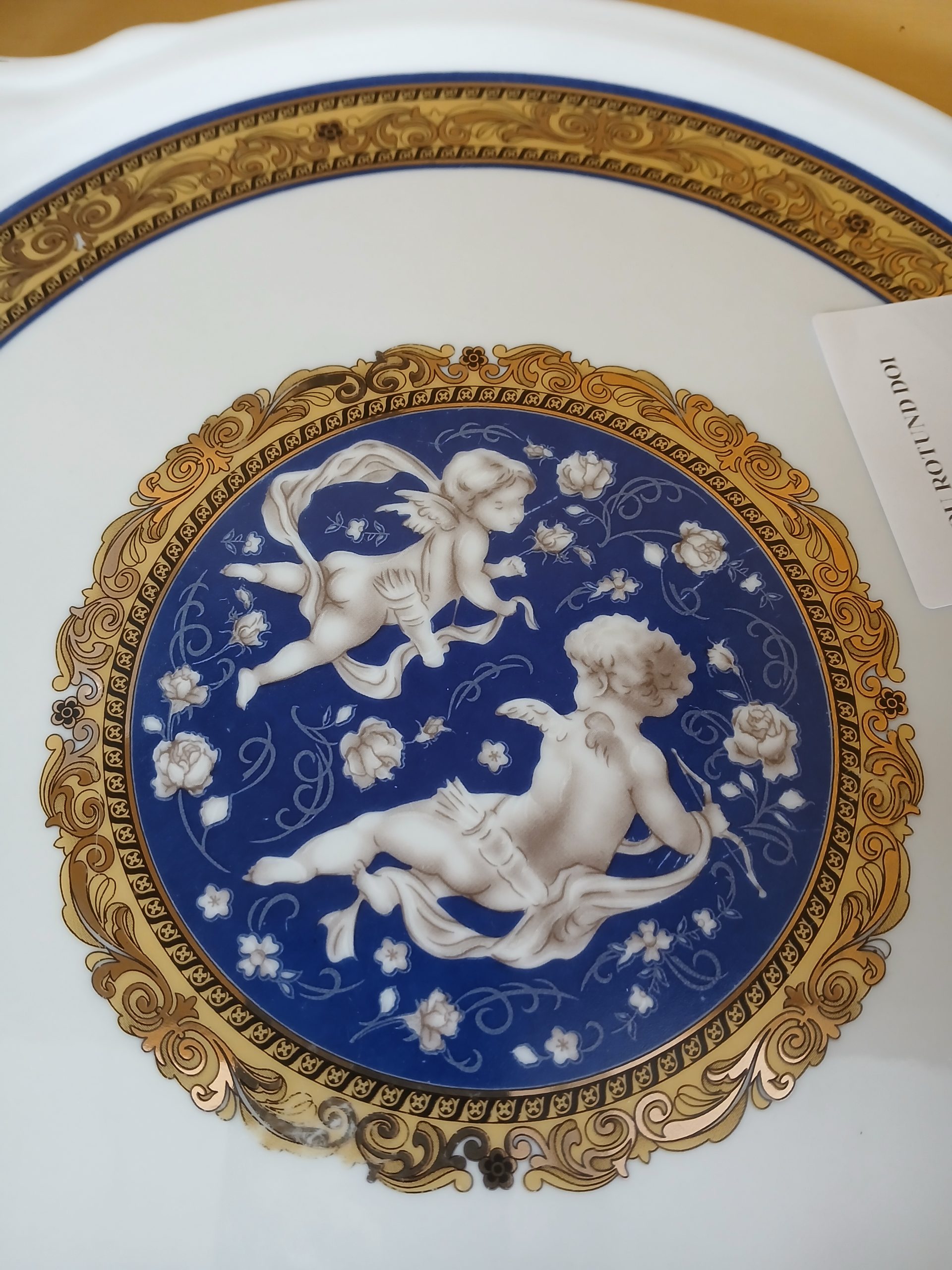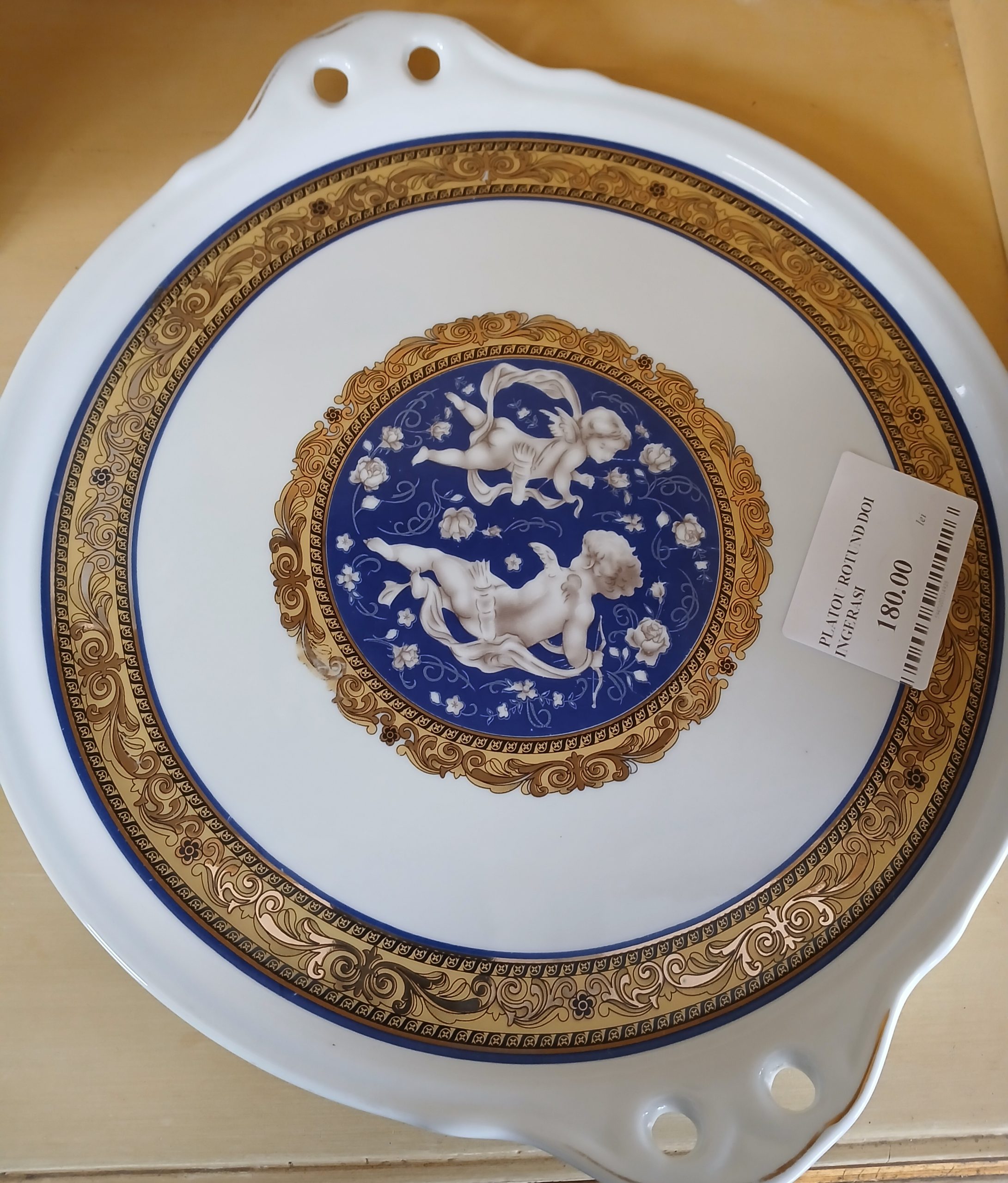 Un frumos platou rotund decorativ din porțelan cu ingerasi din colecția Belle Epoque Fine Portellana.
