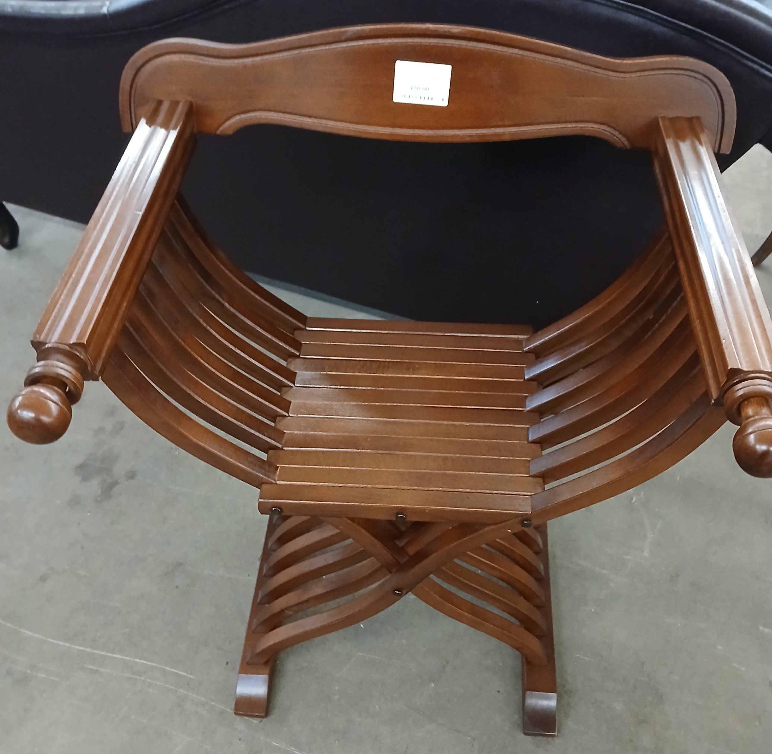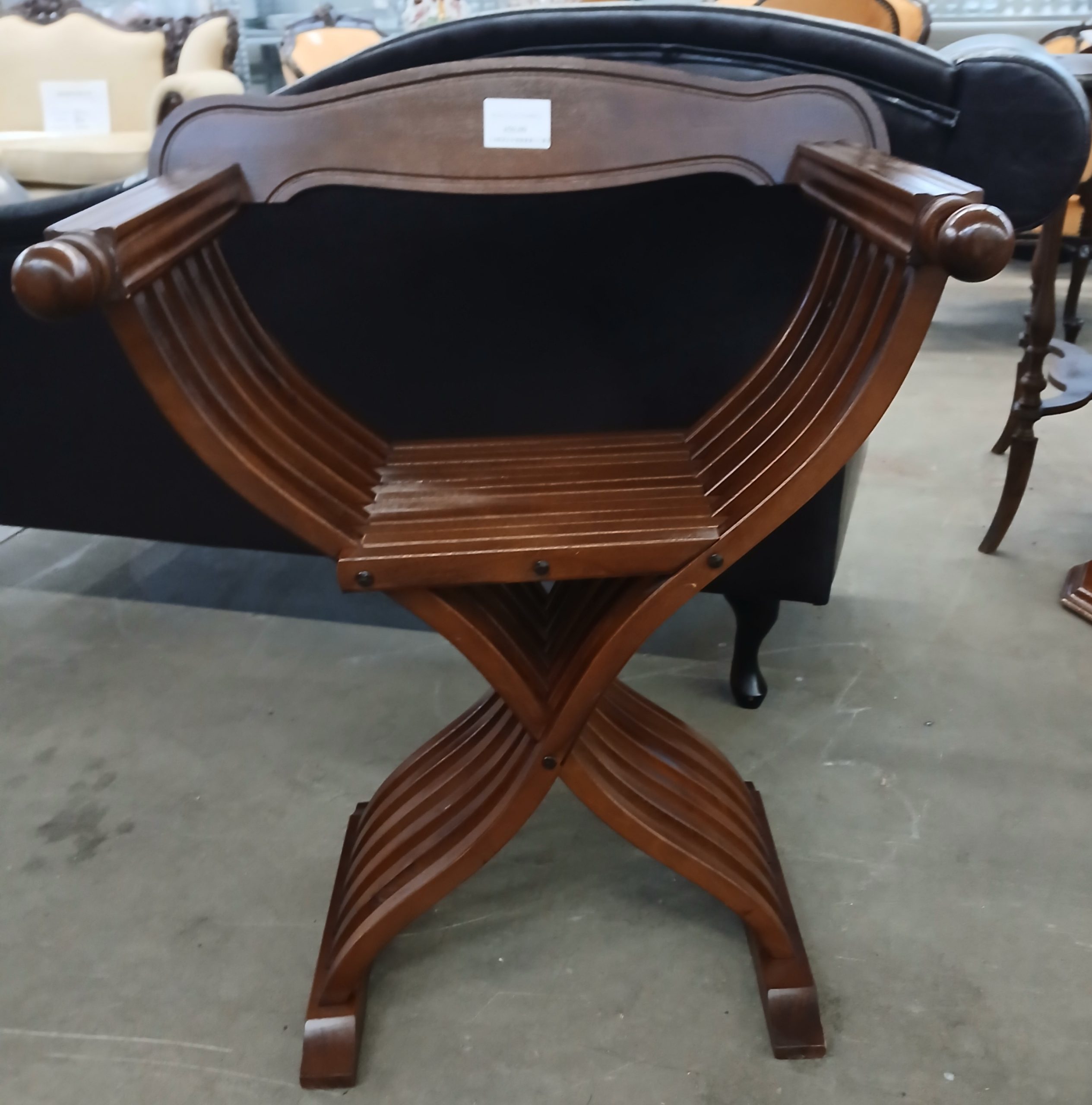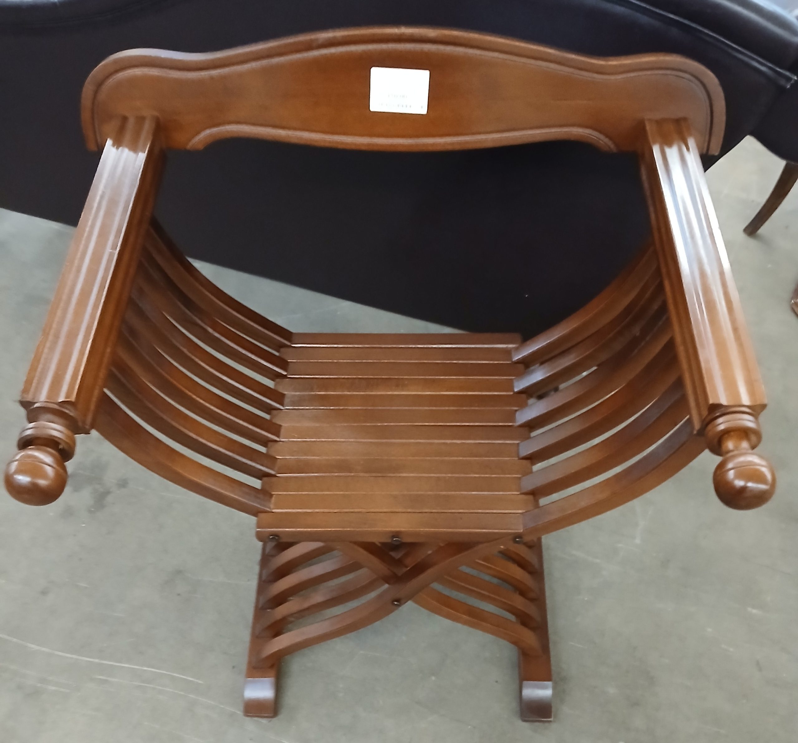 Acesta este un scaun pliabil Savanarola din lemn masiv, inspirat de mobilierul renascentist.