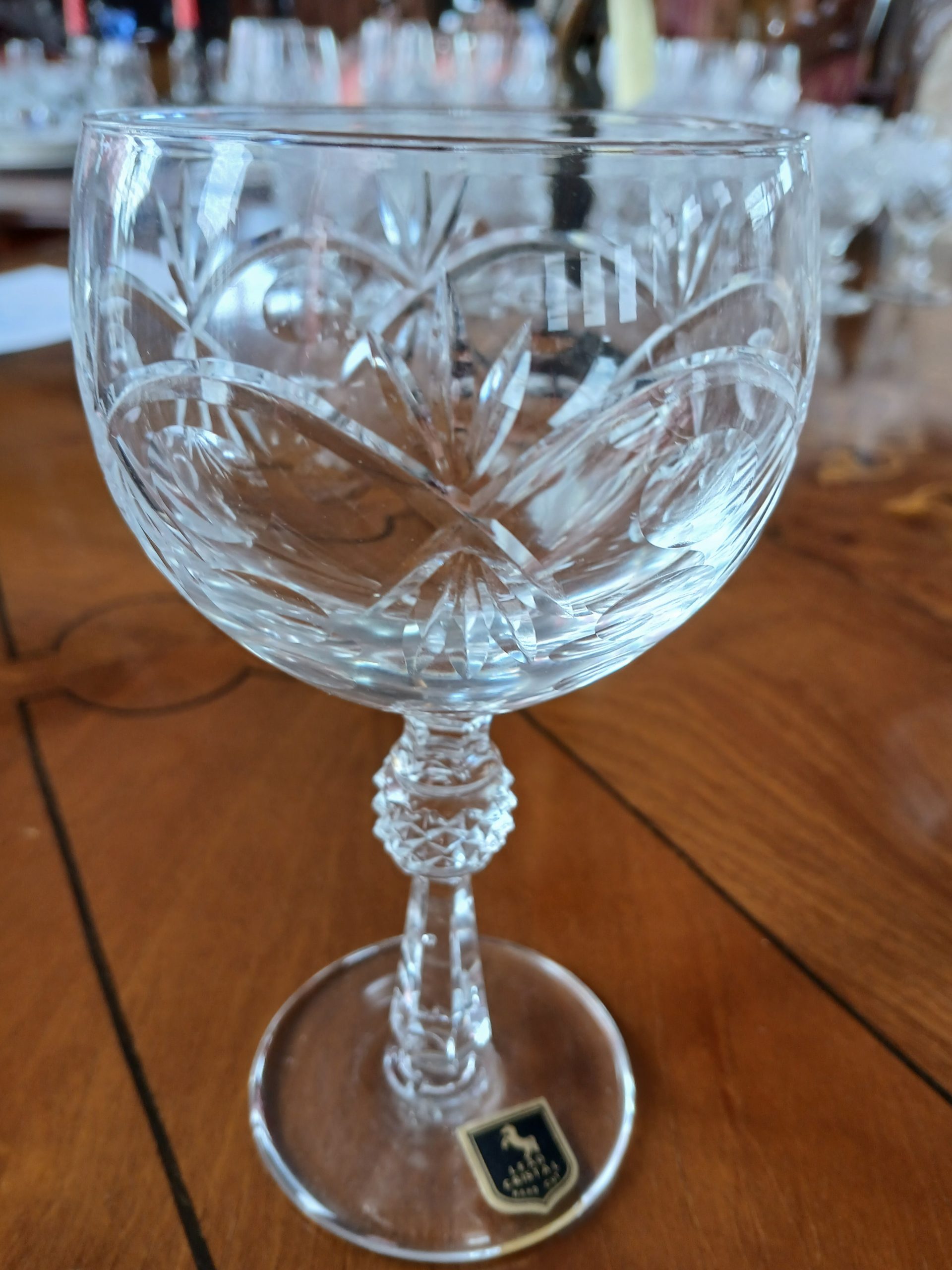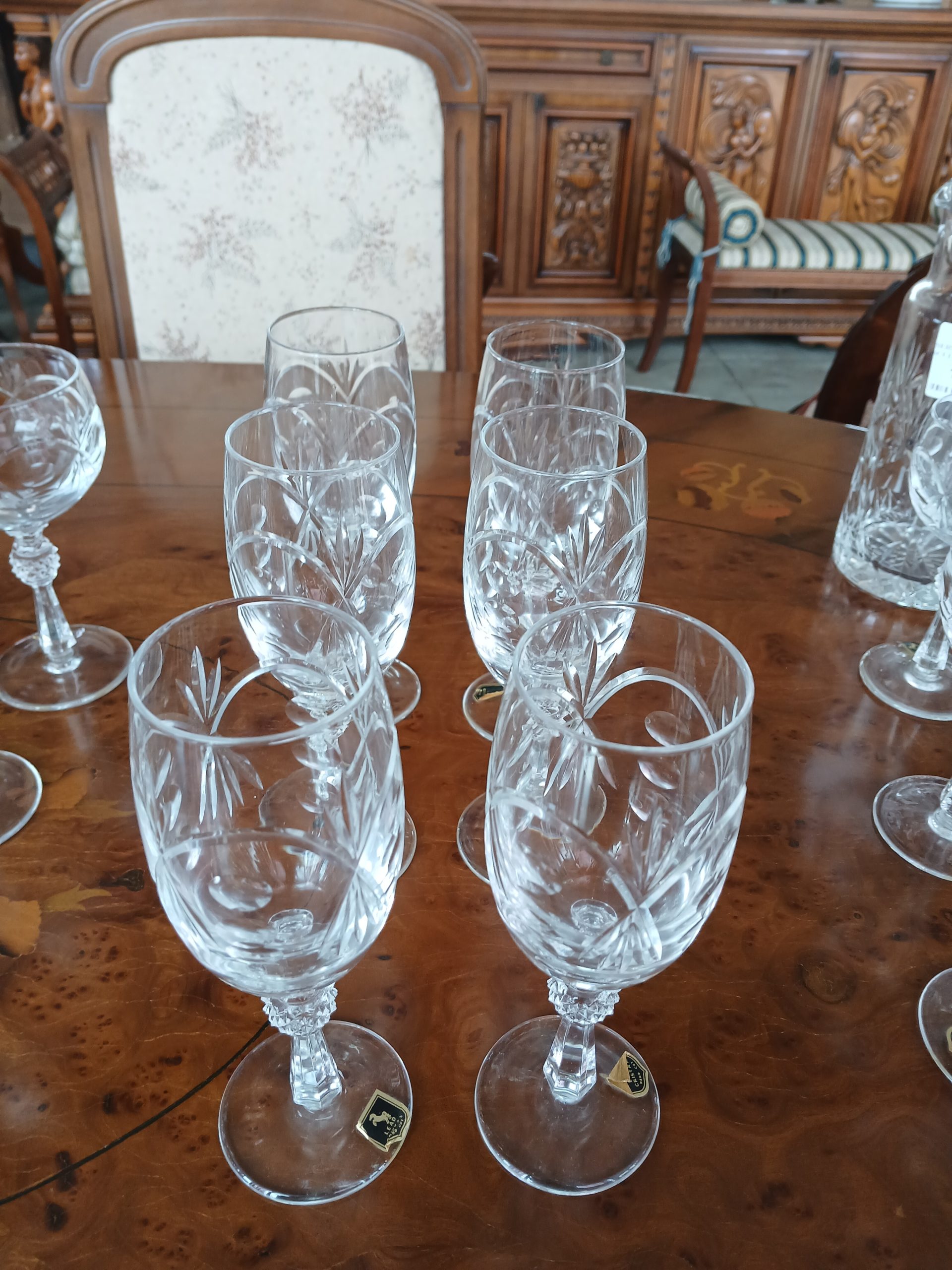Acest set de pahare si carafă din cristal sculptat manual, este un set vintage Bohemia-Crystalex, caracterizat prin transparentă ridicată si taieturi decorative in formă de diamante. Cuprinde: