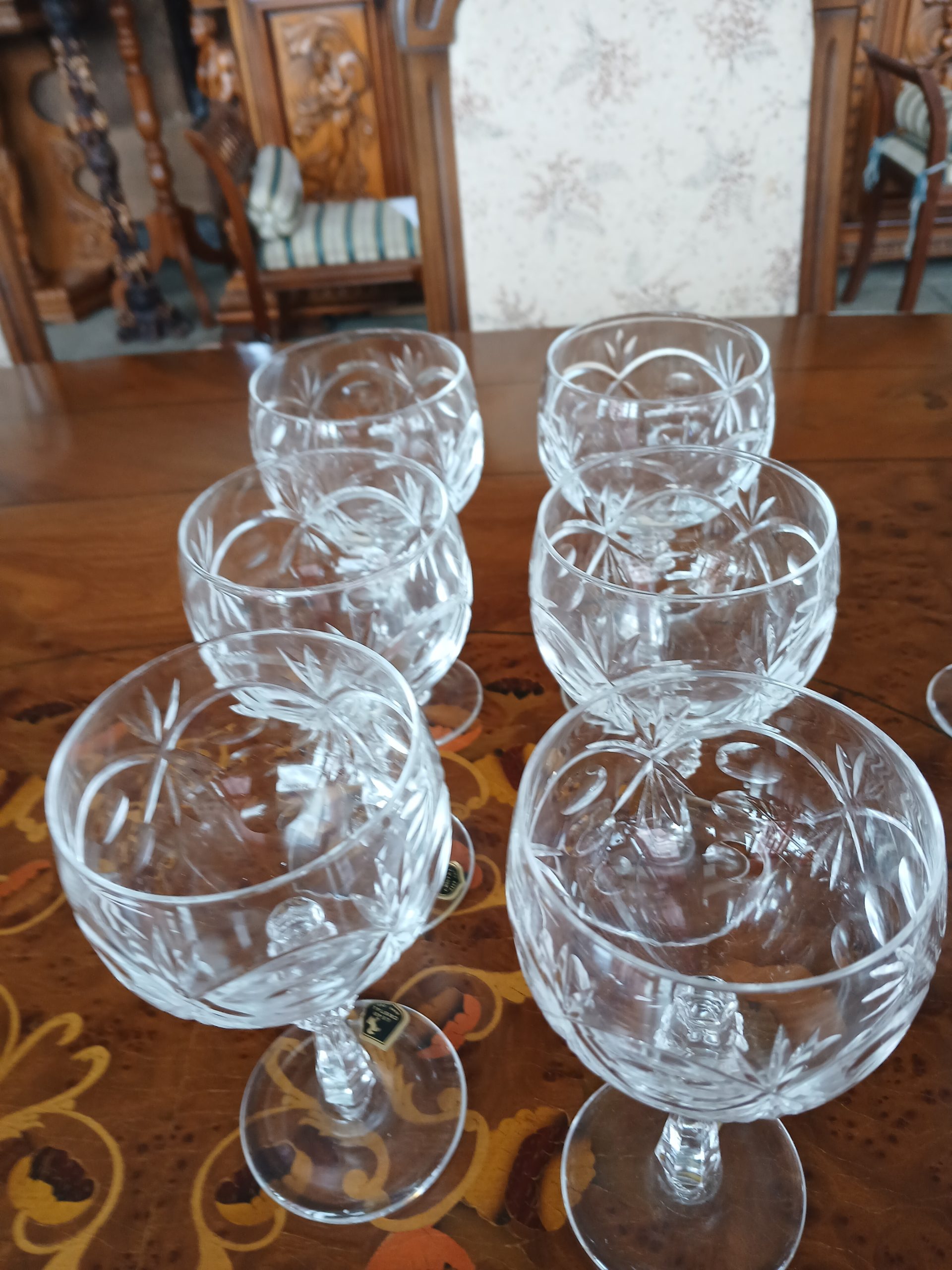 Elegant set de 6 pahare/cupe + 1 vas inalt, din cristal, ideal pentru salata de fructe, sangria sau inghetata.