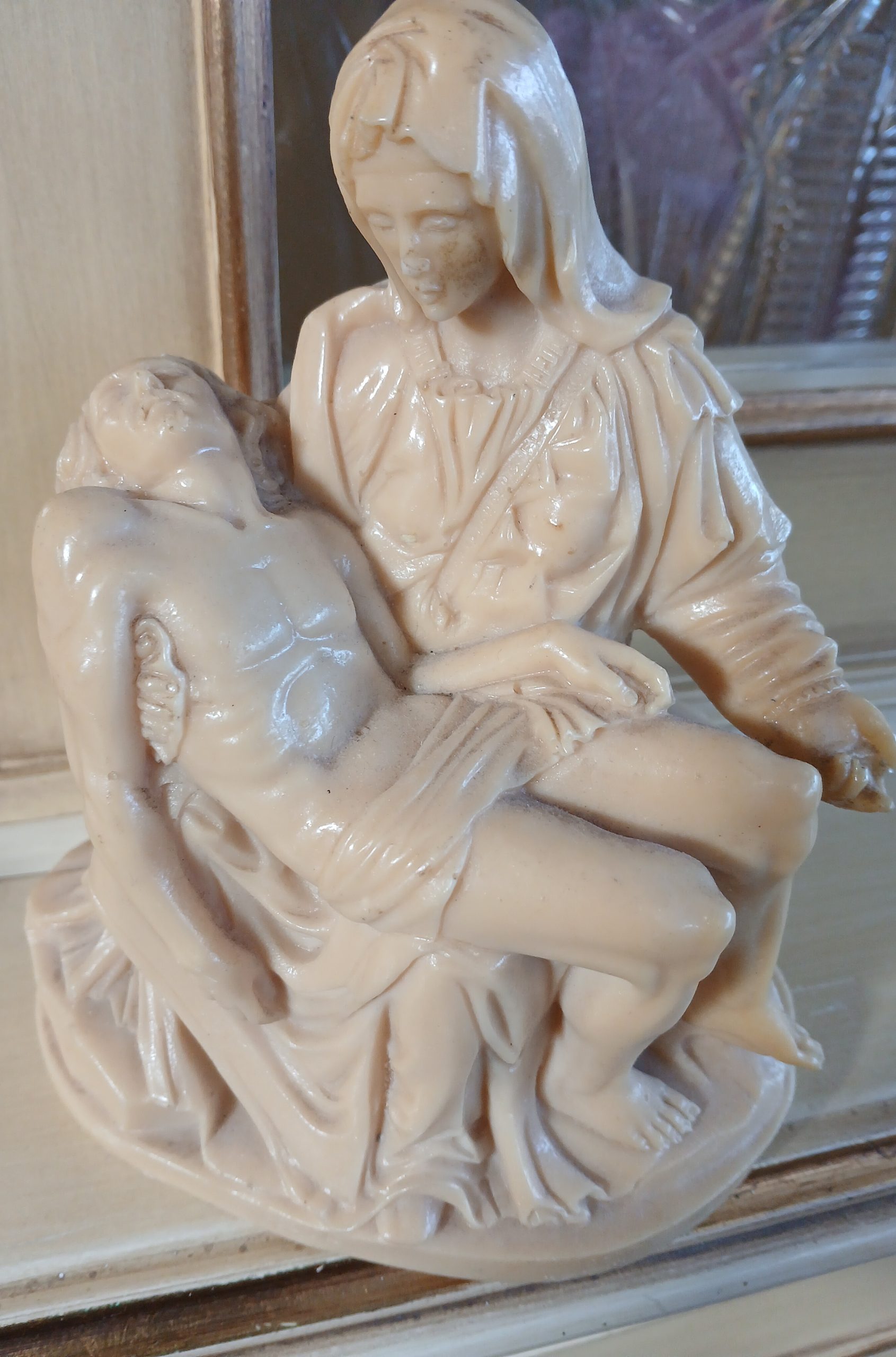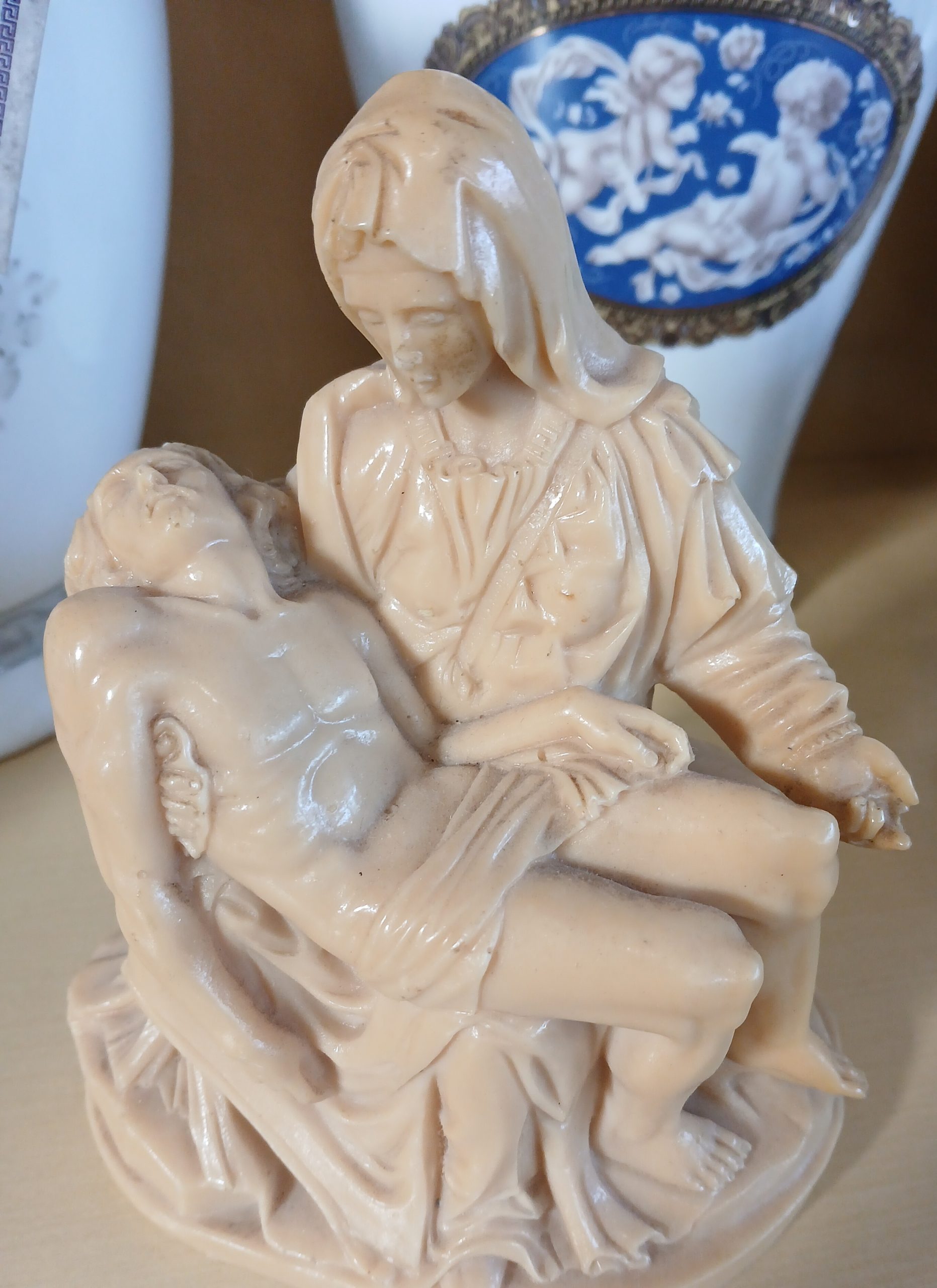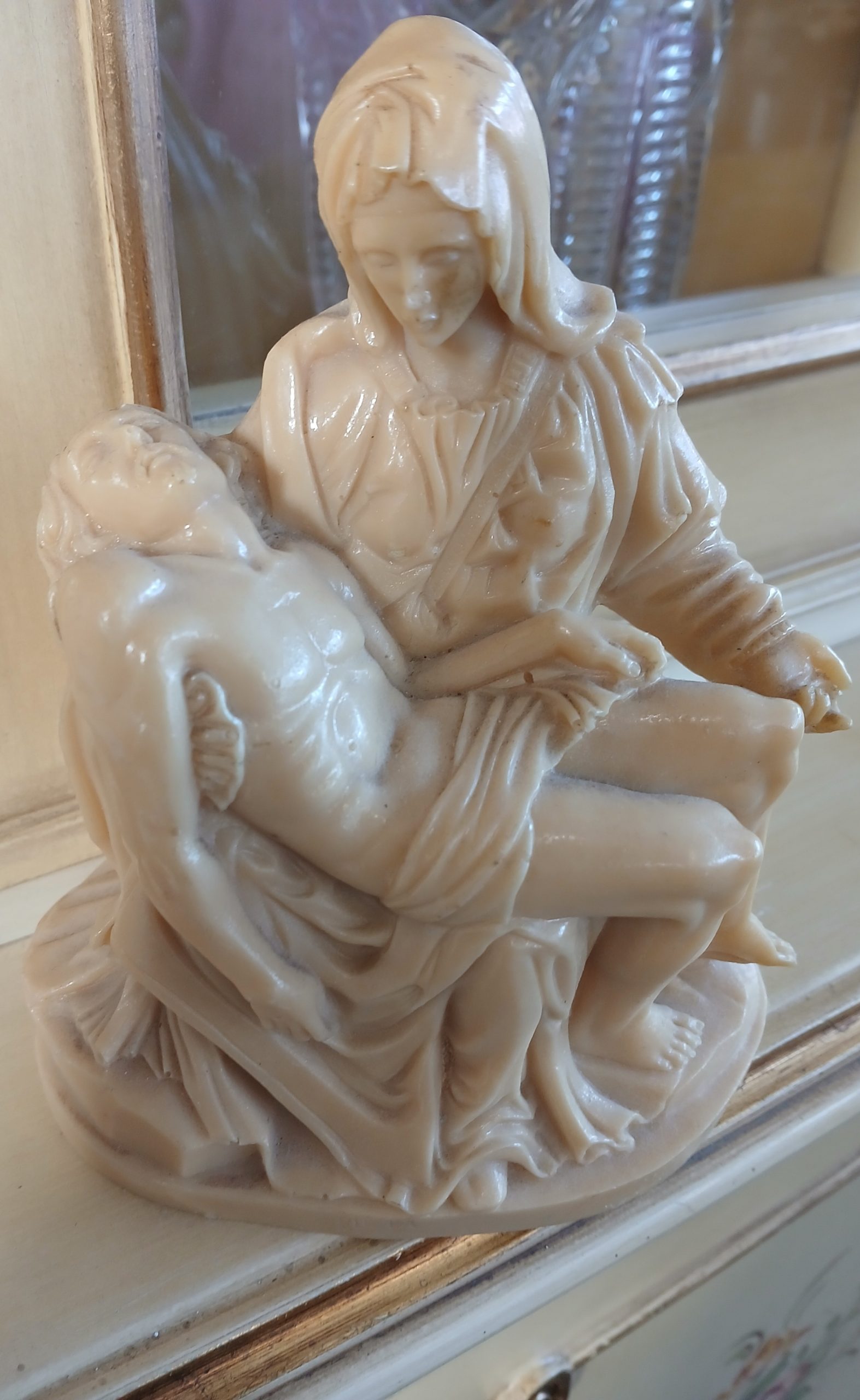 Aceasta este o statuetă care reprezintă sculptura Pieta de Michelangelo Buonarroti.